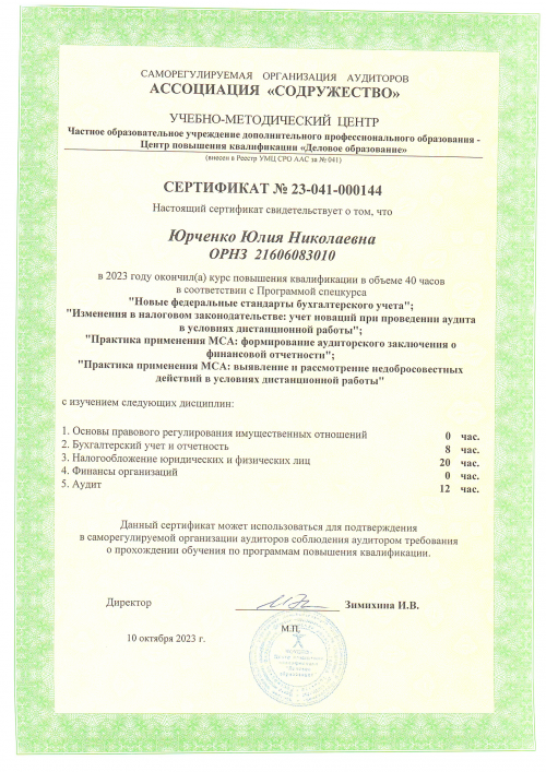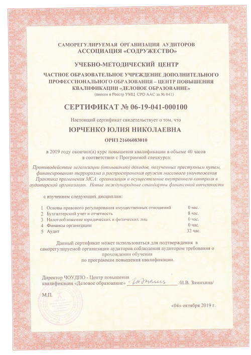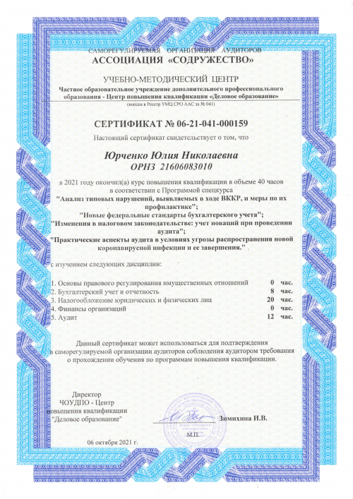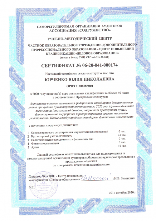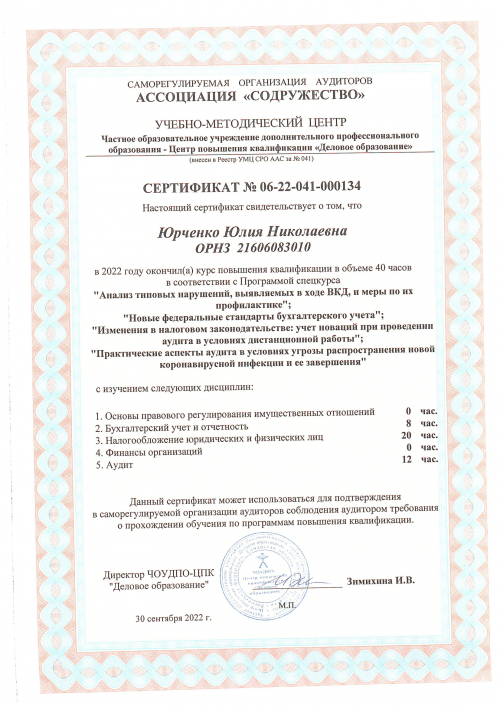 Свидетельства о повышении квалификации Юрченко Ю.Н.