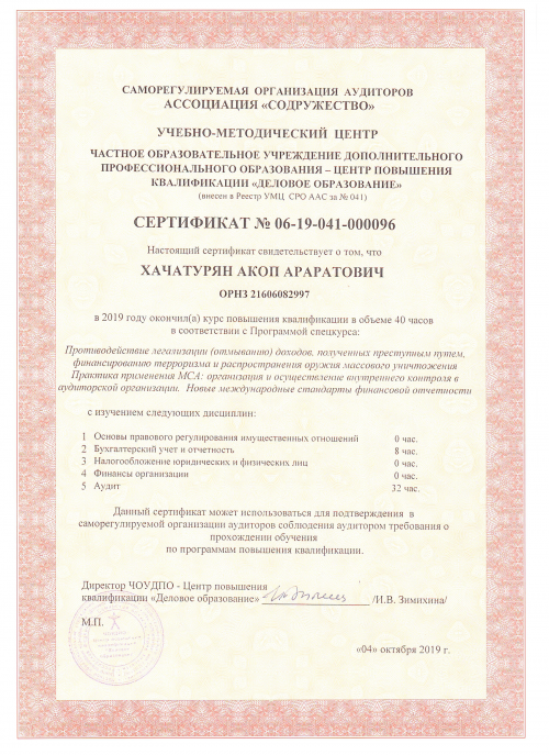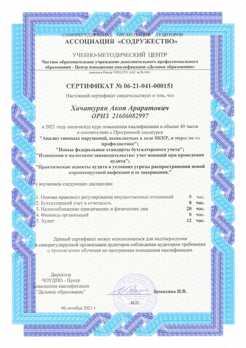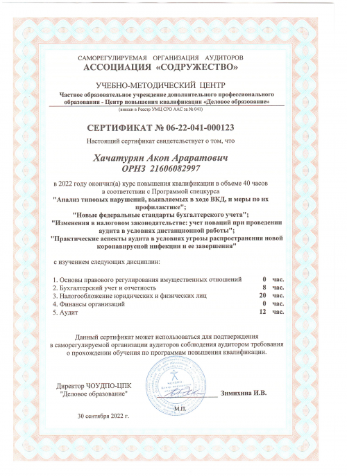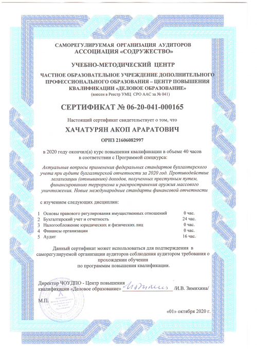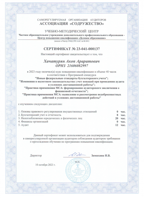 Свидетельства о повышении квалификации Хачатурян А.А.