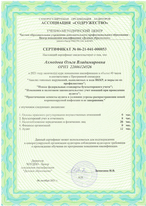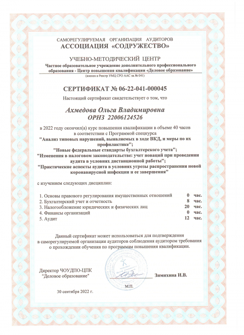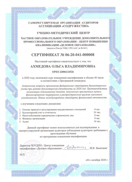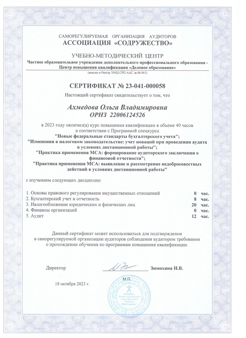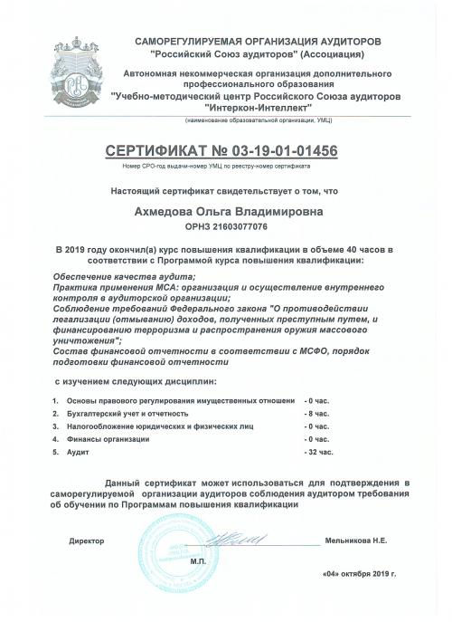Свидетельства о повышении квалификации Ахмедова О.Н.